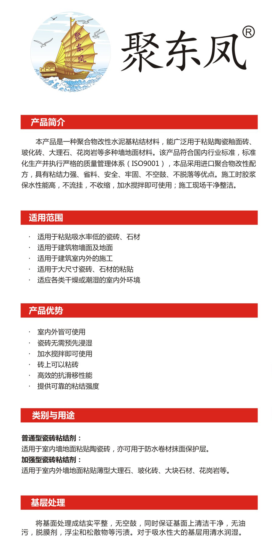 聚東鳳云長C95強(qiáng)力瓷磚膠
